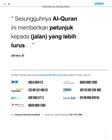 a.n. Yayasan Cinta Quran Global | Konfirmasi melalui WhatsApp: 0811 127 0099